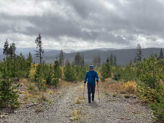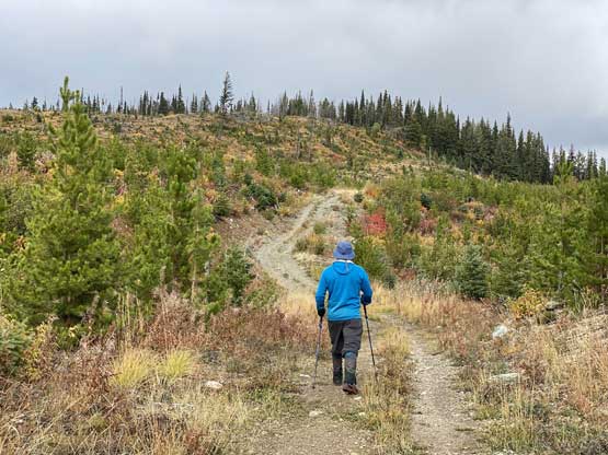 Brandon plodding up the uppermost Boulder Mountain FSR