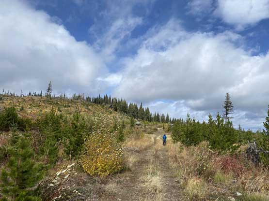 Brandon plodding up the uppermost Boulder Mountain FSR