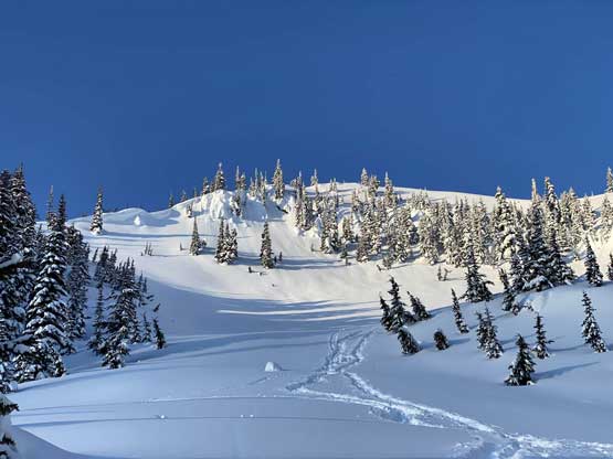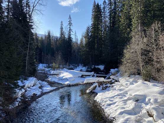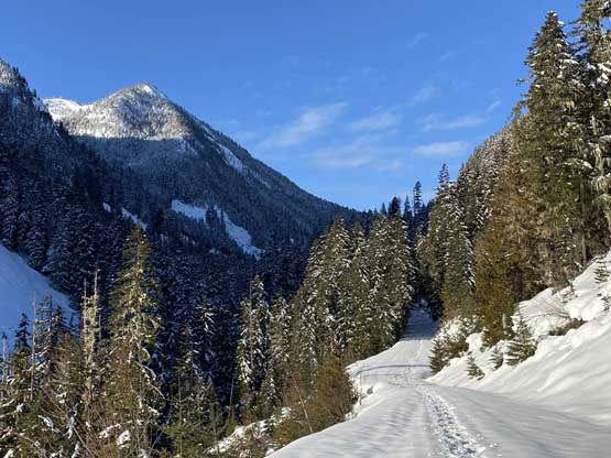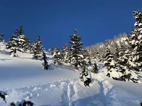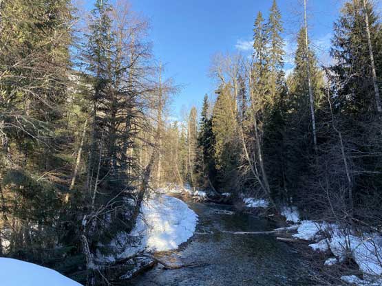 That short vege-belay step was tricky to descend that I had to face into the slope and made some sketchy step-kicking on my snowshoes. There were some more tricky “technical snowshoeing” afterwards but nothing felt sketchy and soon I was back to the col. I rushed back up the false summit and finally was able to take my parka off. Then I rushed down the north ridge and then into the bowl. Plunging down the dry powder was super fun on the 35-40 degree snow and in no time I was down into the woods. For that steep canyon stretch I plunged on the dry powder on the sides of the wall and then simply jumped that downed tree. There’s some gradual descending following but the cutblock was also fun and furious with lots of plunging and gliding. I rushed the 5-km road exit in just over 40 minutes and made back to the vehicle exactly 5 hours after leaving it in the morning, listening to music the whole way…