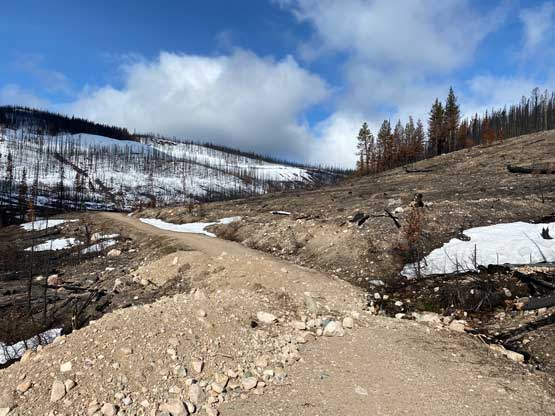 The short-cut brought us to a stretch of burnt forest