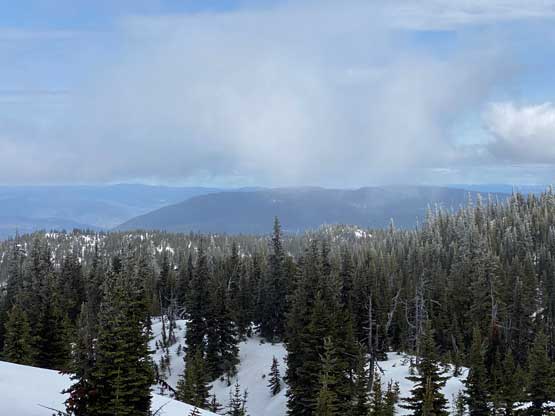 The peaks to the south and west towards Coquihalla Pass were soaked in all day