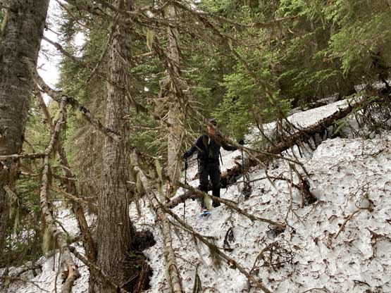 Lots of dry patches on the south slopes that we just snowshoed straight up…