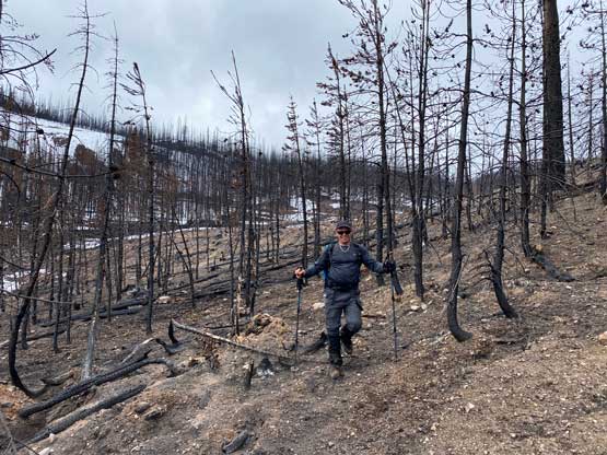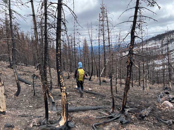 Me traversing/descending the burnt forest trying to not get too black…