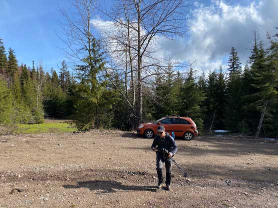 Phil A. was game for the last minute plan as the weather was just crap anywhere closer to home. The area further than Merritt would see some guaranteed sunshine but we also weren’t keen to drive that far away, so “Fig Peak” that’s it. Phil picked me up at 6 am and in just over 2 hours we were cruising up Coquihalla Pass in rain and white-outs. I triple-checked all weather models to make sure that nothing had changed since the night before. The forecasts were still calling for only 15% chance of precipitation so we resumed on, and sure enough the rain gave way to some broken clouds just when we were about 30 km from the objective. When we turned onto Fig Lake Road the weather was actually “mostly sunny”. There were some active mining at the start of the FSR but they didn’t put up those “private property” signs so we just quietly drove through. We were able to drive a couple kilometers up the road in Phil’s 2WD car to the switchback at 1250 m. There were patches of snow ahead so we parked.