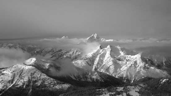 Looking over Mt. Winthrop (fg) towards the distant peaks in eastern Cascades (Lago, Carru, etc.)