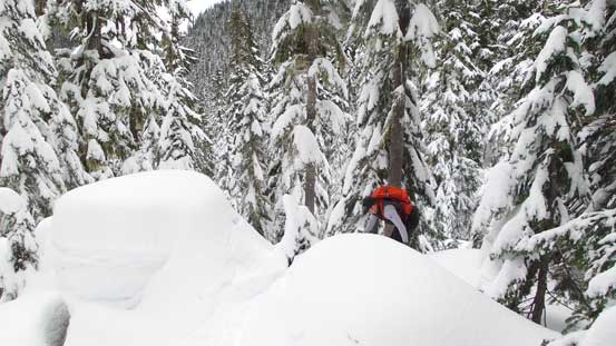 The weather was better than expected as we started our trip from Zopkios Rest Area. The initial approach follows the deactivated Ottomite Road which is the same as for Zupjok – Alpaca traverse that I did a few weeks ago. One creek crossing proved to be tricky on skis and we all had to take the skis off, but other than that it’s mostly cruise sailing to the broad, forested Ottomite/Zupjok col. The section from Ottomite/Zupjok col to Zupjok/Iago col involved some tight forest but with Ben leading the way I didn’t have to think too much about the route-finding.