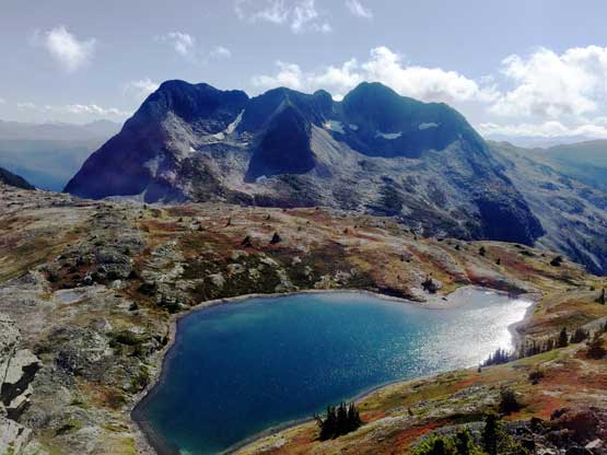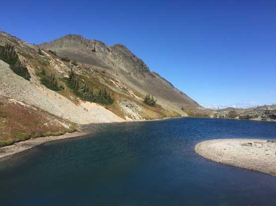 “Illal Mountain” is the unofficial name of the flat-topped bump immediately north of Illal Meadows in the headwaters of Illal Creek. This peak doesn’t boast much peak-bagging interest, but for those scrambling the much-bigger Coquihalla Mtn. a detour to Illal Mtn. only addes less than one additional hour. There’s a photogenic alpine lake on the southern slopes that attracts hikers and overnight campers and overall this zone is fairly popular in the summer months. Connor, Vlad and I opted for this side trip immediately after finishing a traverse of Coquihalla Mountain.