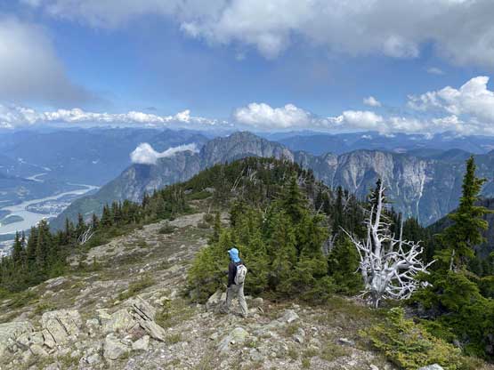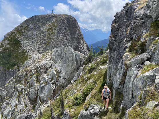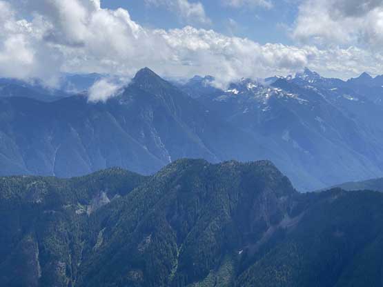 Isolillock Peak is a decently iconic massif that’s extremely visible while driving down the Fraser Canyon road from Yale towards Hope. It rises directly above the town of Hope and the mighty Fraser River for over 2000 m elevation. The ascent is however, not nearly as difficult as it looked from below. This peak was more often done from Sowerby Creek but these days with the beta-sharing of new era is ‘clear that the better attack is from Eureka Mine Road from the north. This approach also gives oppourtunity to combine Isolillock Peak and Silver Peak is one outing. The north ridge is the most logical route on the north side but recent reports had indicated that a direct ascent from Silver/Isolillock col was also very feasible. Christine and I decided to take advantage of all these “beta” to ascend Silver Peak and Isolillock Peak in the most efficient fashion. We drove up Eureka Mine Road to above 1500 m elevation and firstly made an ascent of Silver Peak. Now at Silver/Isolillock col our plan was to traverse Isolillock Peak to make a loop.