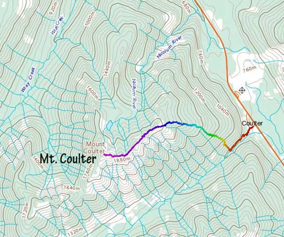 The lower end of Mt. Coulter’s east ridge is almost vertical…