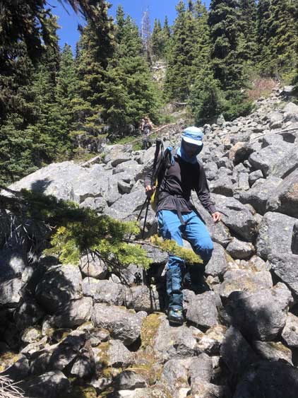 Me descending a boulder field