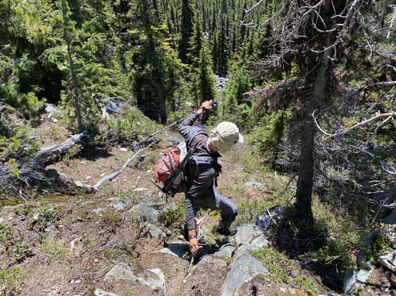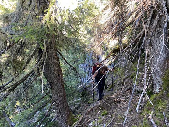 Vlad leading down some unpleasantly steep terrain…