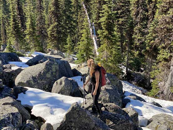 Crossing this snow-covered boulder field was a bit interesting…