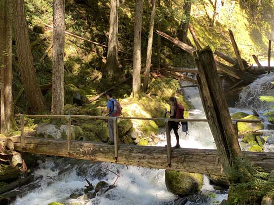 Vlad crossing the first bridge over Eaton Creek