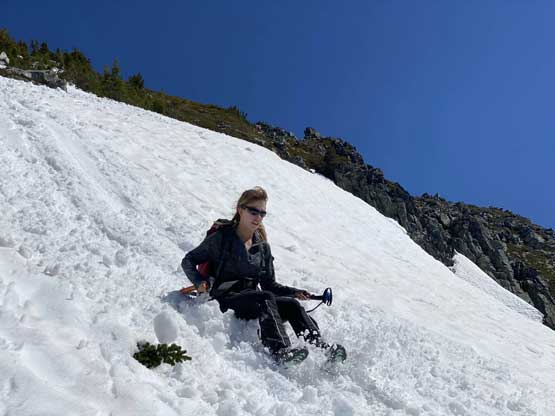 Elise finishing the south face gully descent
