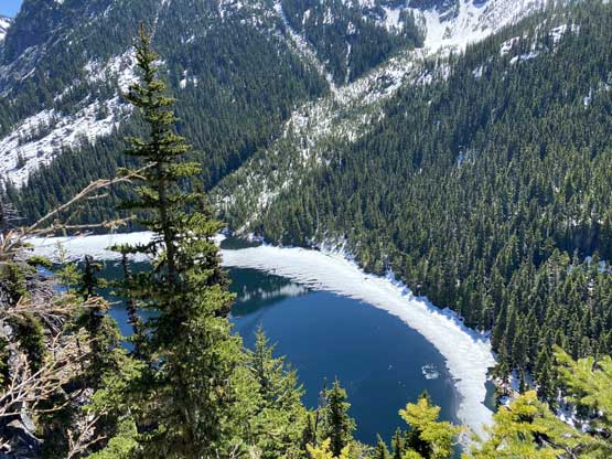 Welch Peak et al. in Cheam Range behind the frozen Swanee Lake