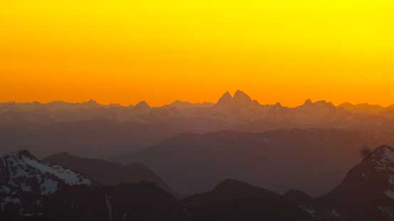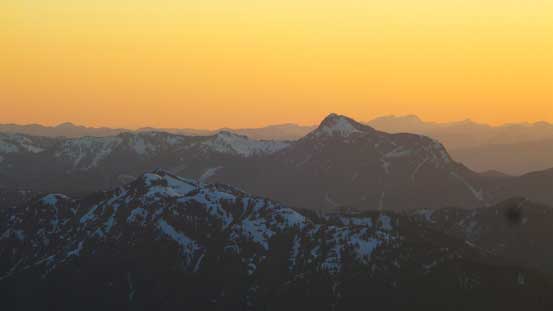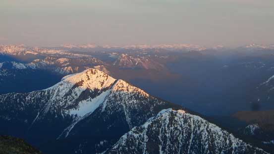 Looking over the summit of Marmot Mountain towards distant giants in the North Cascades