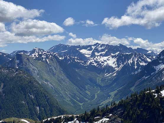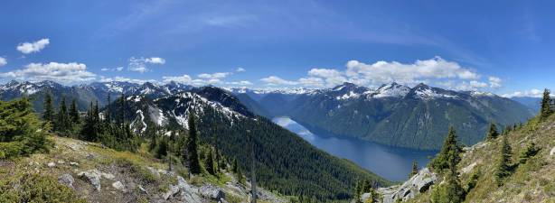 Paleface Mountain is one of the minor summits right next to Chilliwack Lake but offers some nice views of the BC Cascades. The peak itself is nothing but a walk-up and the access had been significantly improved in the last couple years thank to the new logging in Paleface Creek drainage. Earlier in this year the Paleface FSR had seen a huge fallen log blocking the road but with excellent work done by 4×4 enthusiasts the log’s been removed, and now with a high clearance 4WD vehicle one can drive to 1200 m elevation and the peak can be ascended in a mere couple hours. There’s a good trail leading up to “Paleface Pass” but from there one needs to do some cross country travel and bushwhack to reach the summit. The easiest route seems to be on the north side but there are multiple routes that all go.