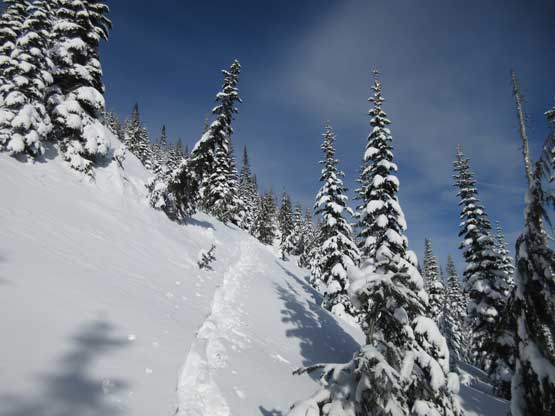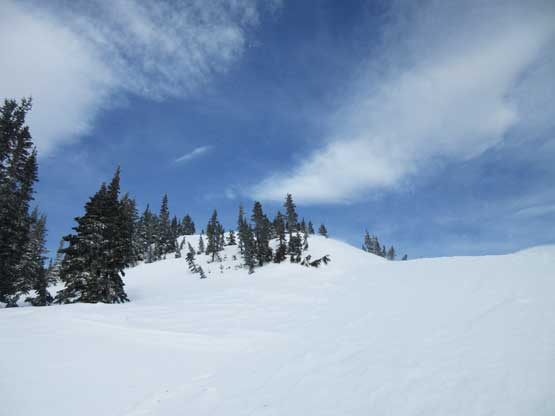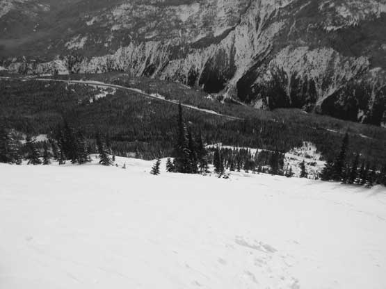 As you can see, the skin tracks were buried by the fresh snow and wind drifts