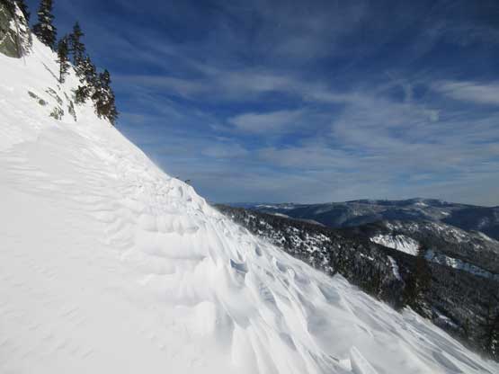 As you can see, the skin tracks were buried by the fresh snow and wind drifts