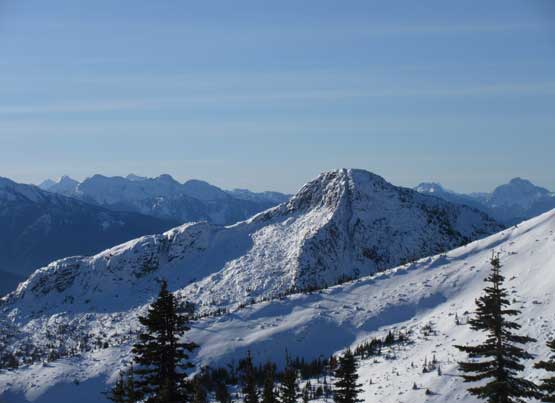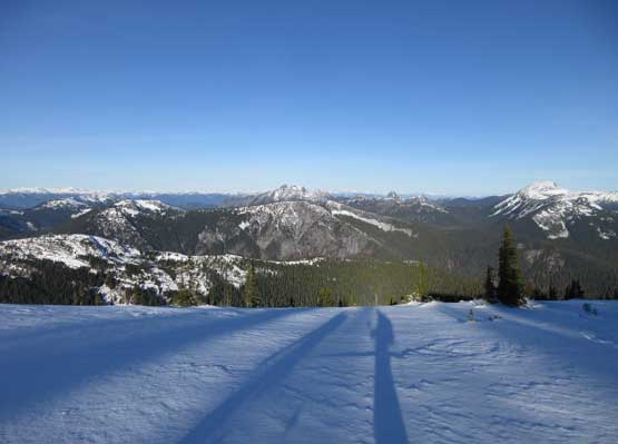 The Flatiron is a broad dome immediately to the south-west of Needle Peak easily accessible from Coquihalla Pass. There isn’t anything particularly appealing about it perhaps other than the far-reaching views on a clear day. Most peak-baggers opt to tag it together with Needle Peak in summer time but I’m one odd bagger who hasn’t even done Needle Peak yet. What I had been eyeing over the last several years was a long, undulating ridge traverse southwards to Portia Peak, and even better, to be done in winter on snowshoes. Despite what appears on the topographic maps the traverse is more complicated than one might expect. The crux would be the steep south-facing slope dropping off the south side of “Two Bears Ridge”. The steepest stretch is around 35-40 degrees requiring bomber avalanche conditions. Combining with the huge physical effort of this outing it’s no wonder why the trigger hadn’t been pulled yet.