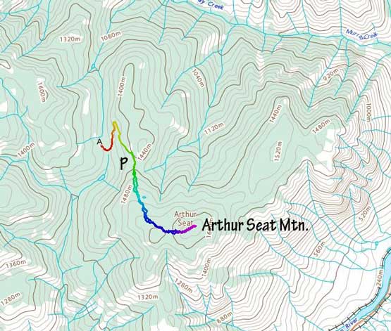 This was not on the original plan of this day but when Alex, Ben and I headed into this piece of woods in Clear Range we ended up having some extra time. The original plan, “Mull Peak” and Murray Peak took us shorter than expected. We then squeezed into “Pasulko Peak” but even that was a bit too short to fill in the day. By doing “Pasulko Peak” we were already halfway up the FSR system leading towards Arthur Seat Mountain. This final objective appeared bushy and extremely uninspiring but we were already there. Even I was contemplating to skip it but the peak-bagger’s obligation won in the end. This highpoint has an official name on the maps so I have to put a check mark on it. No question. Period.