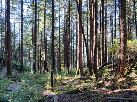 “Belcarra Mountain” is the unofficial name of the highest point in Belcarra Regional Park not far from the urban areas of Port Moody and Coquitlam. The summit itself is entirely forested and offers virtually zero interest asides from getting some exercise, but the viewpoint on the west slope about 100 vertical meters under the true summit is a worthy destination. The trail system in this park is also excellent such that bushwhacking isn’t required to attain this viewpoint or the true summit, and hikers can make all kinds of extensions and/or loops to get the full experience of the area. In my opinion simply tagging the true summit and back from the parking lot would be quite a waste as the highlights of this hike are all but the summit itself.