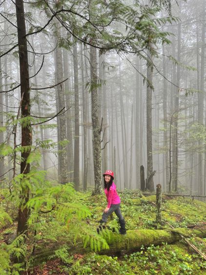 On the descent I led us retracing the exact route that we took on the way up, that in short time we had exited the forest. I carefully rode my bike down to Kate’s ditched bike. As expected Kate’s bike wasn’t very suitable on trips like this, that she ended up taking a few crashes in addition to having to walk the bike down that couple steep rolls. With a better bike we could have ridden the entire way out in a single shot, but we nevertheless finished the round trip in just over 3 hours. Without wasting time I immediately drove us back to White Rock. Kate offered lunch in her house, and I did end up being on time for work, but not with a lot of margin.
