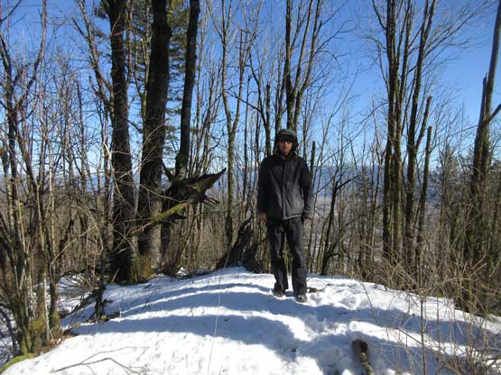 Chilliwack Mountain is a small, but isolated forested hill in the middle of Fraser Valley that boasts absolutely zero mountaineering interest, but as a peak-bagger I had no excuse but to pay some effort to stand on its summit. The required effort is literally nothing because a pave road goes almost to the top, and in fact, most of the “mountain” has been turned into urban areas. The very top of Chilliwack Mtn. is reserved for the natural status thank to the built of Hillkeep Regional Park. From the uppermost parking lot a short trail brings local hikers to a “viewpoint” and from there it’s a very short bushwhack to the summit. The summit is heavily forested.