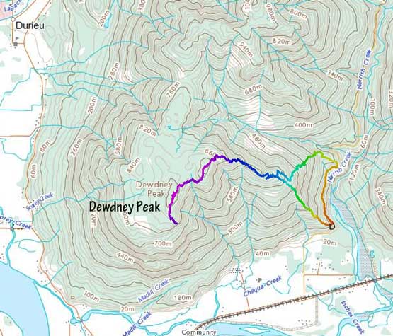 Dewdney Peak hiking route via Dewdney Grind. GPX DL