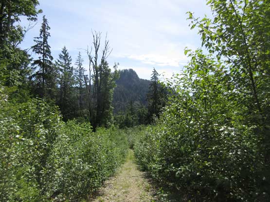 The first of the many logging roads that the trail crosses