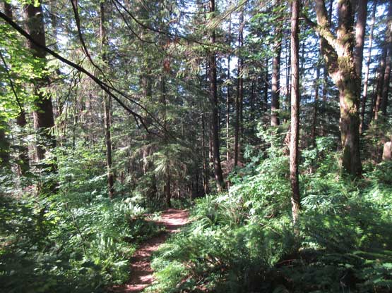 The first of the many logging roads that the trail crosses