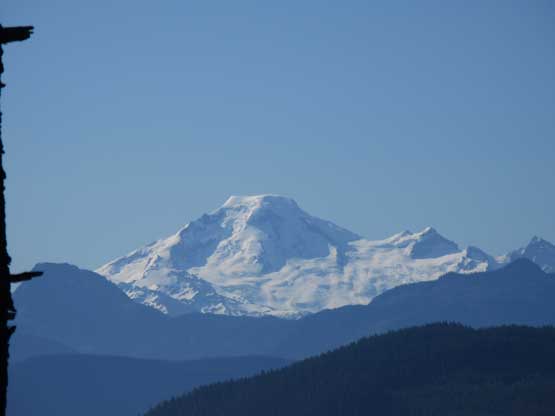 A zoomed-in shot of Mt. Baker from the cabin