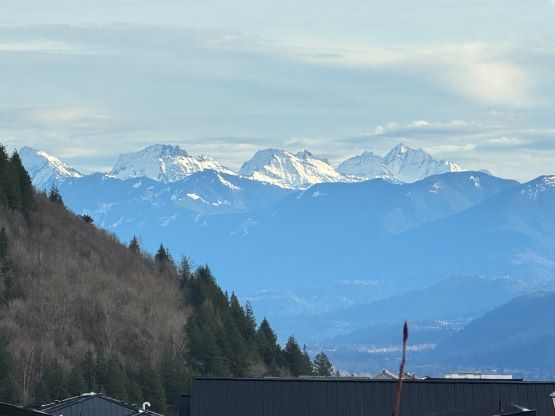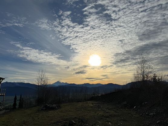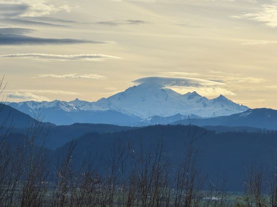 A zoomed-in view of Mt. Baker catching some lenticular clouds
