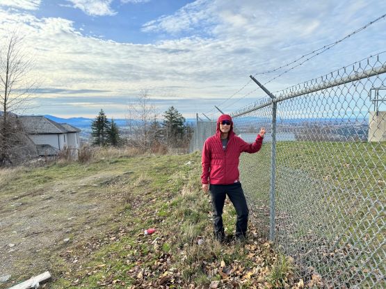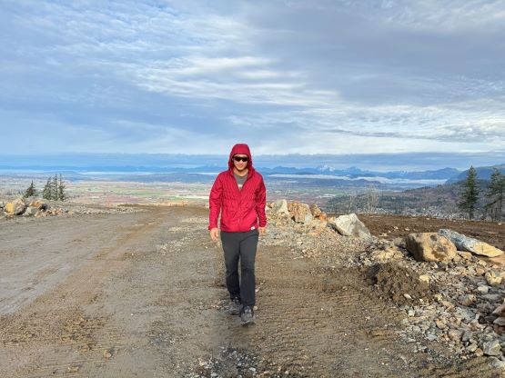 Our first stop was actually the A&W in Abbotsford for breakfast as otherwise I would be too hungry to do anything. This costed us an additional half an hour, so our hiking time was limited to about half an hour. Even by parking at Eagle Mountain Park (~270 m elevation) and walking from there was pushing the limit, but I really did not want to drive to the top. There were a few junctions and I used the Gaia map to direct us to the summit. The walk was longer than I thought such that we were almost doomed to be late.