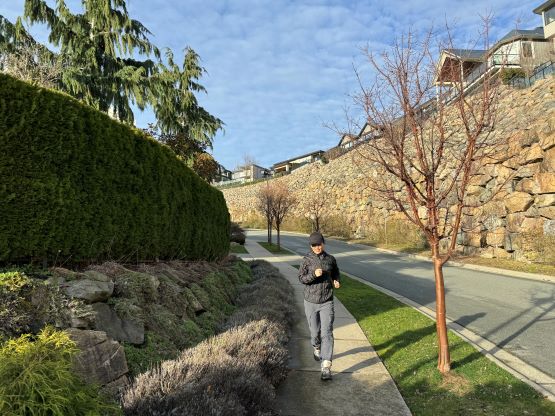 On the descent I suggested running and this was a good decision. The descent was much quicker than I thought such that we finished the round trip in 37 minutes. I then sped our way homewards passing numerous large trucks (at times, dangerously) on the 16th Ave. We eventually got back at 11:23 am which was considered “okay”. About an hour later we drove out to Burnaby for lunch at our favourate dumpling place.