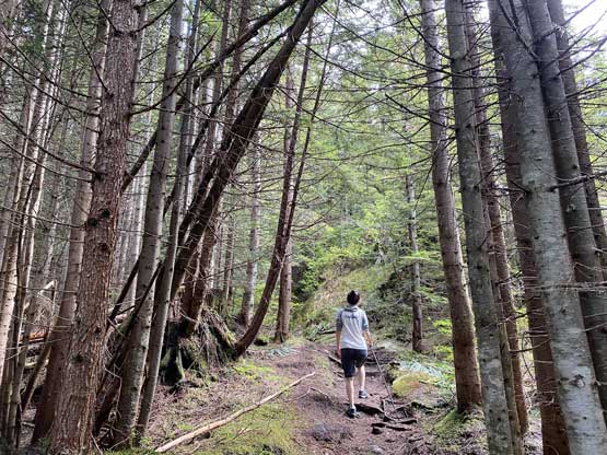 There were a few lookouts on the south slopes of Eagle Mountain according to my maps but I couldn’t summon enough of motivation to check them out because all seemed to require some detouring. At this point I wanted to get home as early as possible so that I could take a nap before the afternoon work, so we took the shortest way down (which was to descent the exact same line). Once rejoining the trail all we needed was to turn into a robotic mode and put one foot in front of another. It sure felt like a slog to plod out, but wasn’t too bad. Our round trip time was under 5.5 hours and in the end, I did manage to get home an hour before work time.
