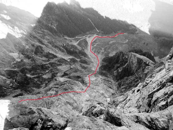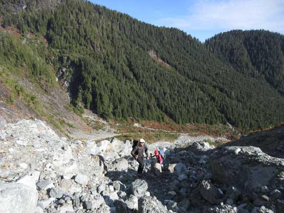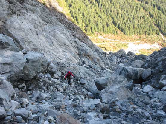 Vlad heading up the alluvial fan underneath Edge’s NE Face