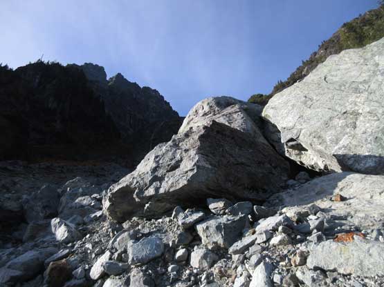 Vlad had left a car outside the gate just in case the midnight phone call couldn’t go through because he absolutely had to be back home on time for Monday’s work. The three of us then squeezed in my Corolla and went for the West Canyon trail-head. We eventually managed to start the plod at around 8:30 am. As non-alpine as it seemed this was the earliest we could humanly do. The first hour was a mundane hike on a flat trail with minor up-and-downs and upon hitting a tight corner the trail gradually ascends into an area known as Alder Flats. We past a couple campers at the flats and left the main trail heading up one of the several dry creek beds. I didn’t do much research but by following the previous party’s GPS tracks we ascended the rightmost creek bed and this helped us avoiding any form of bushwhacking. That big alluvial fan leading to the base of White Dyke has some loose rocks and seemed to take forever. We even got off route at the base of the White Dyke by staying too much on the climber’s left side. After trying a few moves on the nonsense I backtracked and went around. I did find a slabby, but “class 2” only route but then I had to set up a top-rope anchor for Lily and Vlad who got themselves stuck in the middle of a steep strip of moraine. They had to essentially batman up the fixed rope and this unplanned pitch costed us at least half a hour valuable daylight time.