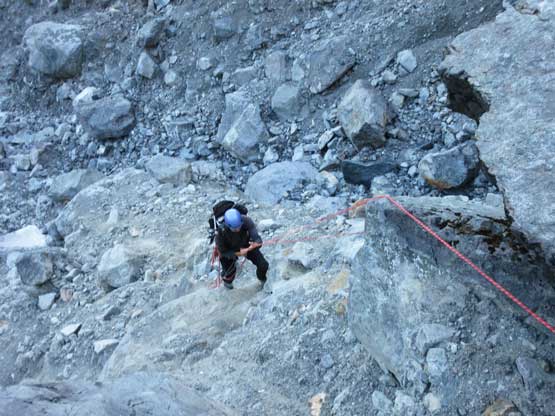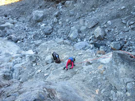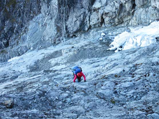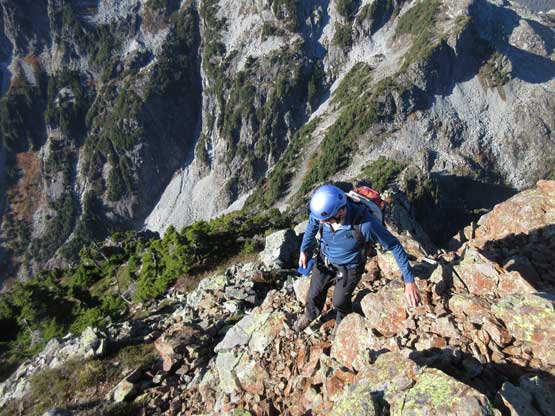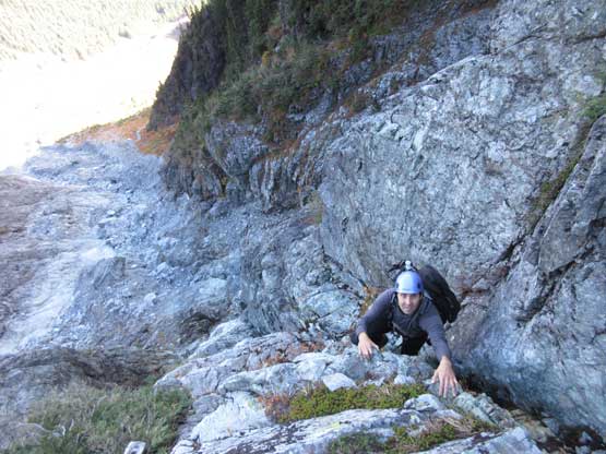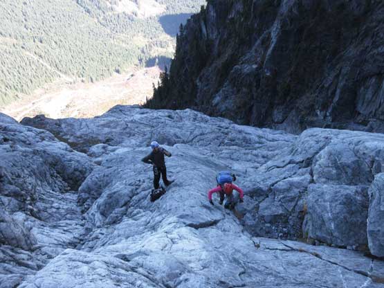 Me and Vlad climbing up unroped now. A mistake isn’t an option. Photo by Lily Q.