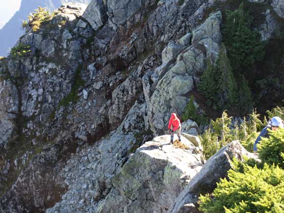 Back onto the NW Ridge proper, looking down to see the shadow of Edge Peak