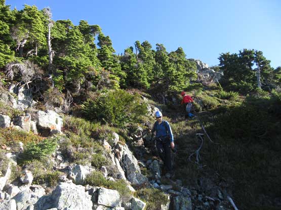 Topping out on the NW Ridge shoulder. Time to ditch some gears