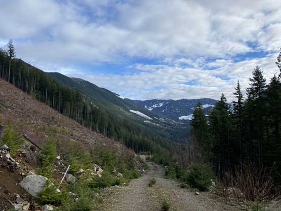 To make sure I could definitely get back home in the evening and still have reasonable amount of sleep I decided to head out on Wednesday evening to sleep in my truck. I drove out at around 10:30 pm and made to the gate on Bear Creek FSR at around 1 am. I had some doubts about the road conditions after the massive wind storm we just had, but ended up not having much of a problem. I woke up at around 8 am on the next day and leisurely cooked a ramen breakfast before starting the plod.