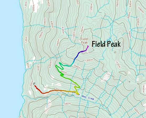 Field Peak is an officially-named but forested bump north of Bear Creek but south of Talc Creek about 15 km down East Harrison FSR. My first time coming across this peak was reading Simon’s trip report on ClubTread a few years ago. This did not sound like a pleasant trip but Simon did not discover the easiest/most efficient way to reach this summit, as he found out on the descent (and later at home). I thought Field Peak would make an ideal winter objective especially when avalanche conditions weren’t the greatest. The views looked reasonably nice in Simon’s trip report so I still needed to do it in good weather. A few years later I finally came across one perfect oppourtunity. The avalanche condition was “High” or “Considerable” across all zones but a brief high pressure system kicked in granting good visibility on Thursday. I was supposed to work in the afternoon and evening but considering the shitty weather we had been receiving recently I decided to go out nonetheless. I bailed the work in afternoon but kept the evening work because I couldn’t justify losing a full day’s worth of money for this dumpster summit.