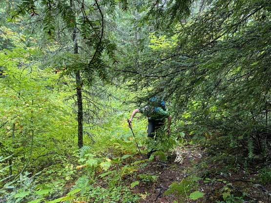 “Gate Mountain” is the unofficial name of a rounded summit that rises abruptly above the Hell’s Gate not far from Boston Bar in Fraser Canyon. This peak offers some neat mid-elevation views of the canyon, but the peak itself is dull and forested that raises very little mountaineering interest. There is a “trail” that goes all the way to the summit from the highway, but the status has become very overgrown and difficult to follow in the recent years. It’s essentially a bushwhack now but with a path and flags here and there to mark the route. The abandoned status is very unfortunate as this trail apparently has some history and is included in Stephen Hui’s 103 Hikes in SW British Columbia. Another fact about this peak that attracts peak-baggers is the prominence. It’s a “P2K” objective in the BC Cascades.