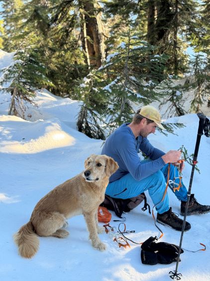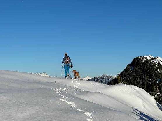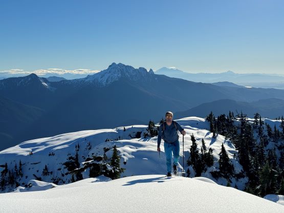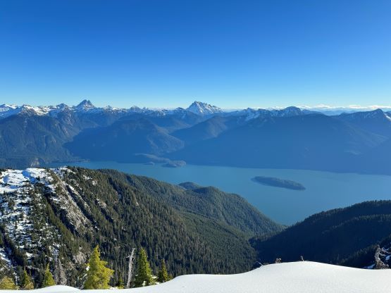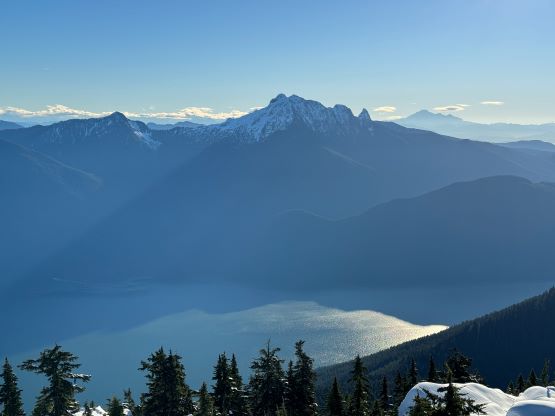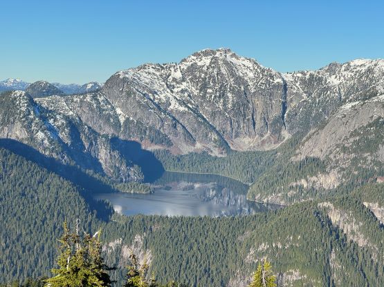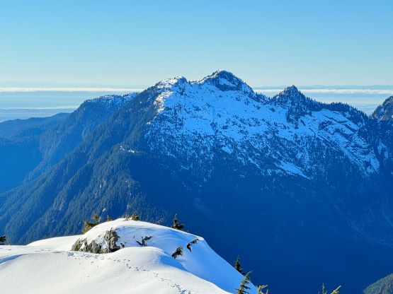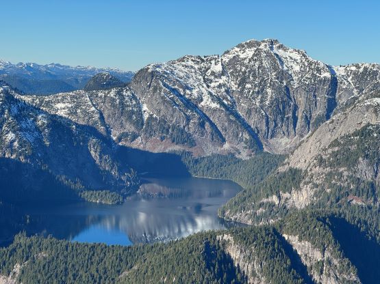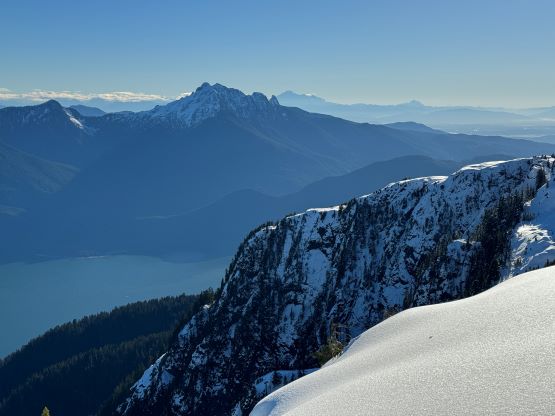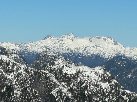 About two years ago Matt J. and I had started a conversation regarding “Gloomy Peak” and we each had our own ideas, with mine being paddling 7 km up Pitt Lake to access the E/NE aspect. But then Thomas M. suddenly logged an ascent on peakbagger.com, albeit without a trip report. Matt talked to Thomas directly and found out a third possible way, same as his from the west but using the key log bridge of “Fools Gold Route” to access the SW flanks and South Ridge. With this way being discovered I was then confident that “Gloomy Peak” could indeed be done in one day, but our ultimate ambition was to tag it as a “before work trip” for me. Fast forward to two years later it was actually me who made the suggestion after seeing a bomber weather forecast for Friday. I did have to be back home for work no later than 5 pm, but we were confident to accomplish that despite the 30+ km distance. Thomas did this objective in the summer (without snow) and never reported anything in depth, so we still had a whole bunch of unknowns waiting to be discovered. The bushwhacking turned out to be much more heinous than we thought, and the south ridge was also complicated with at least one major crux that required some snow climbing. The snowshoes turned out to be training weight thank to the bomber melt-freeze crust, but the ice axe and crampons were essential for the mission. We did eventually accomplish the goal, but the day was much more involved than anticipated that this trip felt like a solid mission.