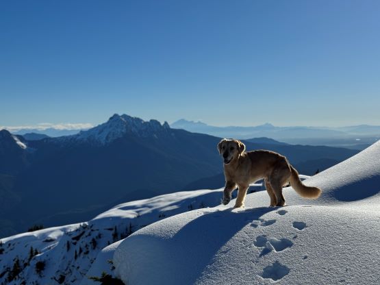 About two years ago Matt J. and I had started a conversation regarding “Gloomy Peak” and we each had our own ideas, with mine being paddling 7 km up Pitt Lake to access the E/NE aspect. But then Thomas M. suddenly logged an ascent on peakbagger.com, albeit without a trip report. Matt talked to Thomas directly and found out a third possible way, same as his from the west but using the key log bridge of “Fools Gold Route” to access the SW flanks and South Ridge. With this way being discovered I was then confident that “Gloomy Peak” could indeed be done in one day, but our ultimate ambition was to tag it as a “before work trip” for me. Fast forward to two years later it was actually me who made the suggestion after seeing a bomber weather forecast for Friday. I did have to be back home for work no later than 5 pm, but we were confident to accomplish that despite the 30+ km distance. Thomas did this objective in the summer (without snow) and never reported anything in depth, so we still had a whole bunch of unknowns waiting to be discovered. The bushwhacking turned out to be much more heinous than we thought, and the south ridge was also complicated with at least one major crux that required some snow climbing. The snowshoes turned out to be training weight thank to the bomber melt-freeze crust, but the ice axe and crampons were essential for the mission. We did eventually accomplish the goal, but the day was much more involved than anticipated that this trip felt like a solid mission.