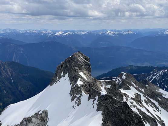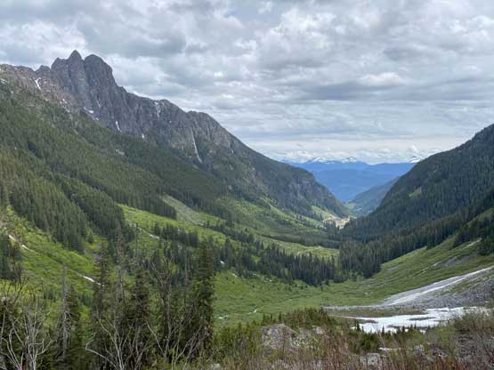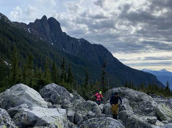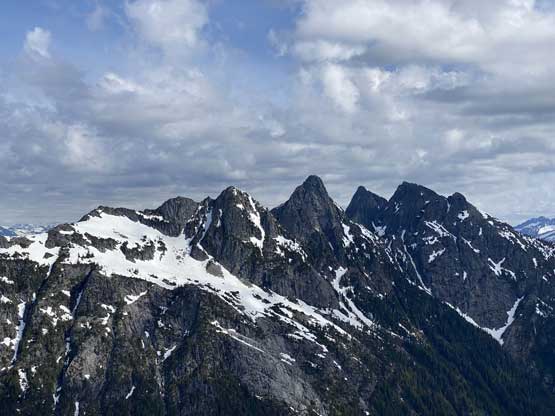 The remote massif of Grainger Peak is the highest summit in the main Chehalis group, buried deeply on the west side of Harrison Lake on the triple divide among Trio, Eagle and Winslow Creeks. To access this area one needs to drive 50 km up West Harrison FSR, which is frequently travelled by loggers, hydraulic workers, 4×4 enthusiasts and weekend campers, but not often visited by hikers and climbers. An ascent of Grainger Peak is a rare feat especially in this modern era after the deactivation of the uppermost Chehalis FSR in the Eagle Creek drainage. The south side approach might still exist but there had been no information for probably over decade, at least not without some thorough digging on the internet. The traditional south side approach is used to climb the south ridge which goes at 6 pitches up to mid 5th class according to Drew Brayshaw on bivouac.com, or the J-Cracks on the south face (5.9). None of these sounds appealing anyway as to reach the summit of Grainger Peak one does not need to climb technical rock.