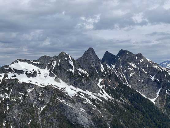 The remote massif of Grainger Peak is the highest summit in the main Chehalis group, buried deeply on the west side of Harrison Lake on the triple divide among Trio, Eagle and Winslow Creeks. To access this area one needs to drive 50 km up West Harrison FSR, which is frequently travelled by loggers, hydraulic workers, 4×4 enthusiasts and weekend campers, but not often visited by hikers and climbers. An ascent of Grainger Peak is a rare feat especially in this modern era after the deactivation of the uppermost Chehalis FSR in the Eagle Creek drainage. The south side approach might still exist but there had been no information for probably over decade, at least not without some thorough digging on the internet. The traditional south side approach is used to climb the south ridge which goes at 6 pitches up to mid 5th class according to Drew Brayshaw on bivouac.com, or the J-Cracks on the south face (5.9). None of these sounds appealing anyway as to reach the summit of Grainger Peak one does not need to climb technical rock.