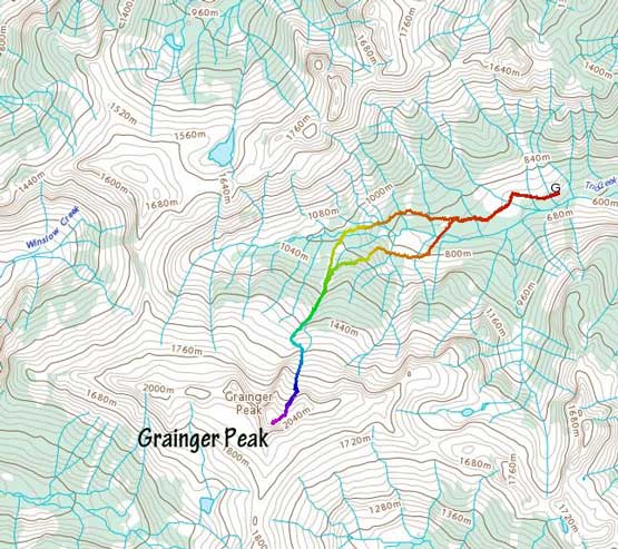 Grainger Peak north face glacier via Trio Creek. GPX DL