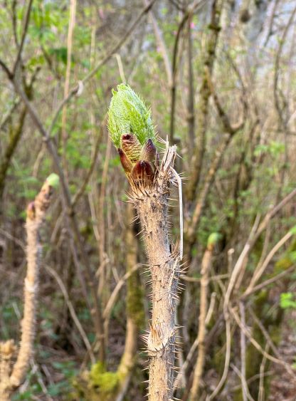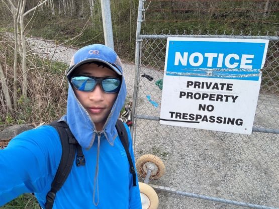 This was the Easter Monday and I had just completed an exhausting 2-day ascent of Mt. James Turner, but I still had some gas in the tank and I didn’t have work fully loaded. I did have to work, unfortunately… I somehow had the afternoon free of obligation and the weather was nice and warm. The exact itinerary of the day was unknown so I decided to finish the morning work first and see how I would feel afterwards. I did have the hiking gears packed in the vehicle in case I did decided to go for a peak. Not to my surprise I decided to head out at 2 pm. I wasn’t keen on a no-brainer kind of objective as I wanted to explore, so picked this bushwhacking sufferfest. About 1.5 hours later I arrived at the bottom of the “Green Grind”, and to my surprise the trail-head was right on someone’s private property with signs of “no parking” and “no trespassing”. I figured that everyone else would have to park at this same spot so didn’t give a fuck. I made sure the vehicle wasn’t blocking the gate and then up I went.